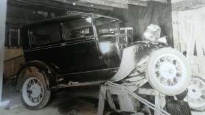 We were “on the County” by then which we was a form of help to people who lost their jobs. There was nothing like Social Security yet. The County gave you a little food which was awful – coffee smelled like onions, the little meat was fat pork of some kind and we were very disgusted. We had had an accident in 1931 while on our way home after driving to Wausau for my parents 25th wedding anniversary on April 12, 1931. We bought a 1929 4-door Ford on a Saturday morning and drove to Wausau the same day. On our way home south of Mosinee a bus from Wausau cut in front of us hitting an oncoming car with folks from [Stratford] disabling their car and it flew across the road onto our car, hitting the hood and front end. Wallie had his hands on the steering wheel and the hard jolt broke his wrist very badly – bones sticking out. After a long trial, the case having gone to the Supreme Court, we finally were awarded $4500 two years later, after lawyer fees and medical expenses.