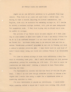 Papers written on topics such as her family tree, Christmas, dreams, hobbies and more while attending Central High School (1945-1948).